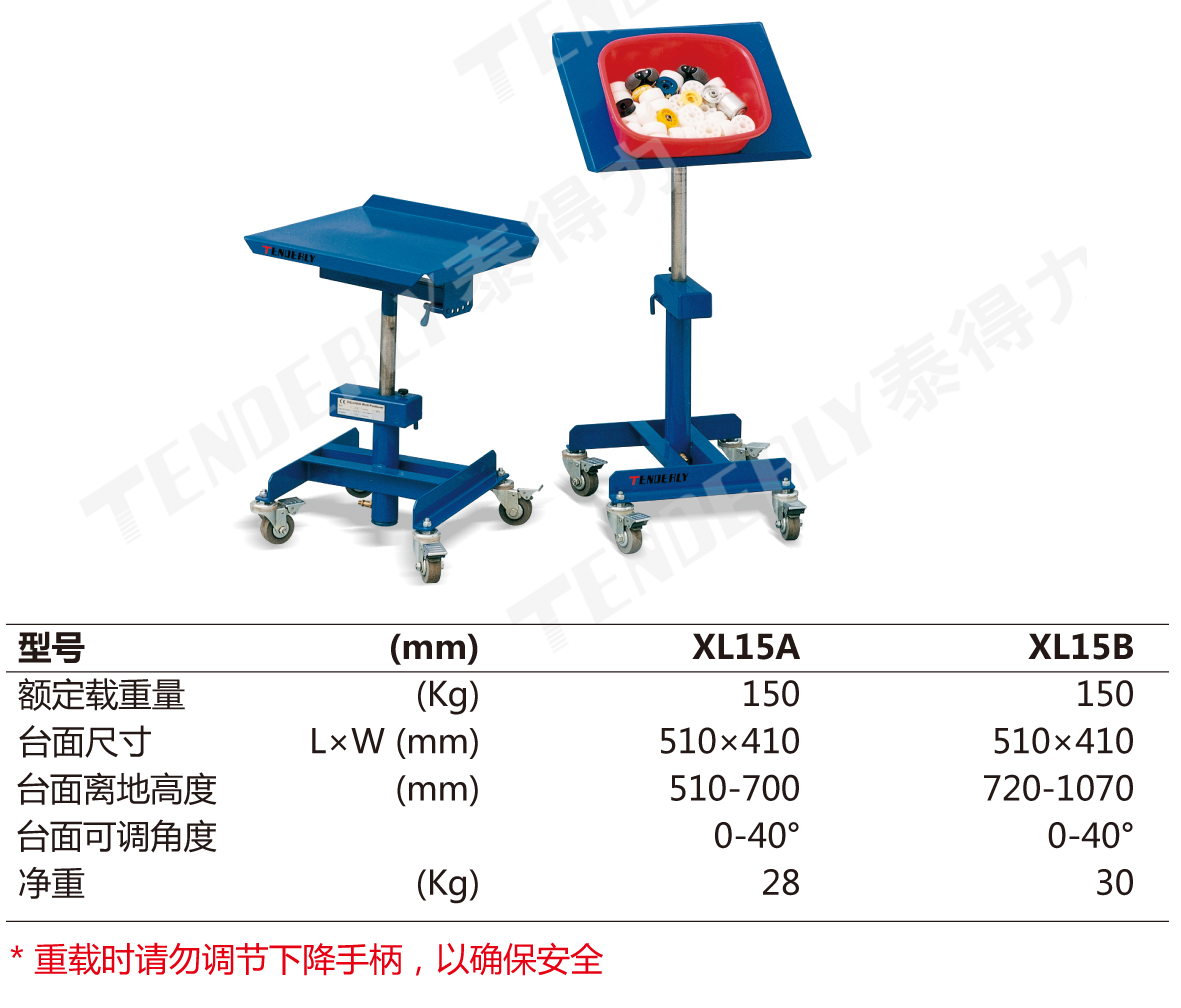 ● 人体工学设计,结构简单 ● 空载时,台面高度可自动锁定在最合适的位置,并且可以在0-40° 四孔位手动倾斜,高效省力 ● 配置下降调节阀口,可调节下降的快慢速度;配置4个带刹车的万向PU轮,移动灵活 ● 广泛应用于装配工位、维修车间等工作场所