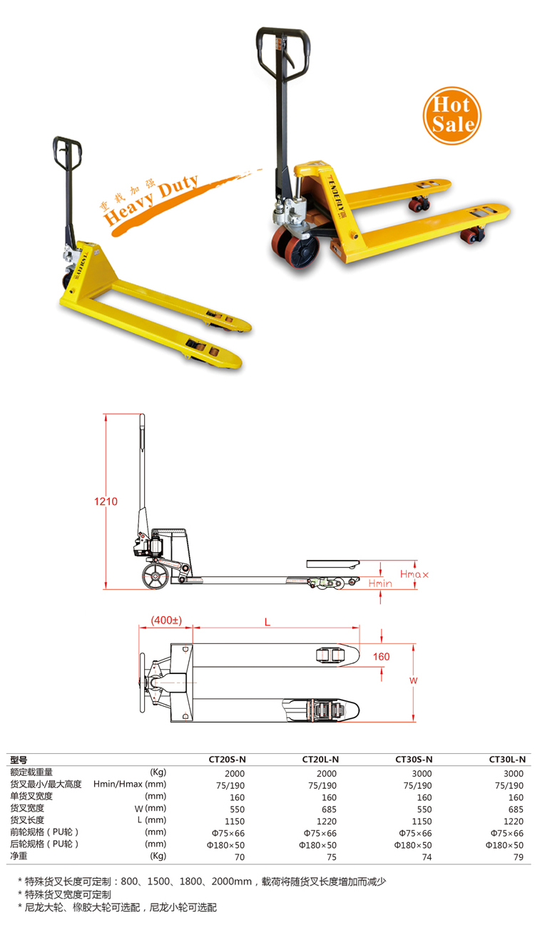 ● 适用于搬运叉口最小离地高度≥80mm的托盘