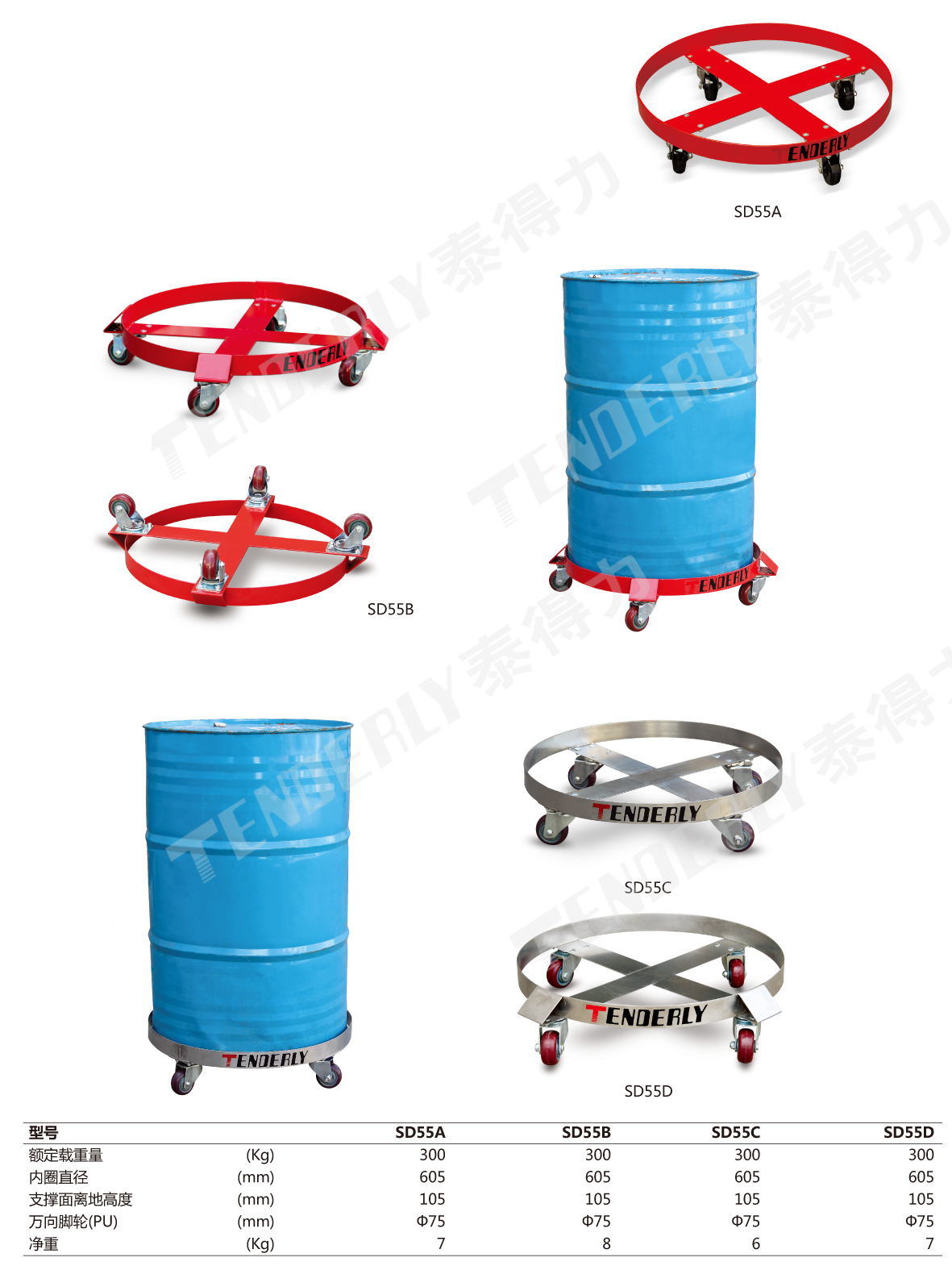 ● SD55B、SD55D型采用重型设计的外置式脚轮,推动平稳省力