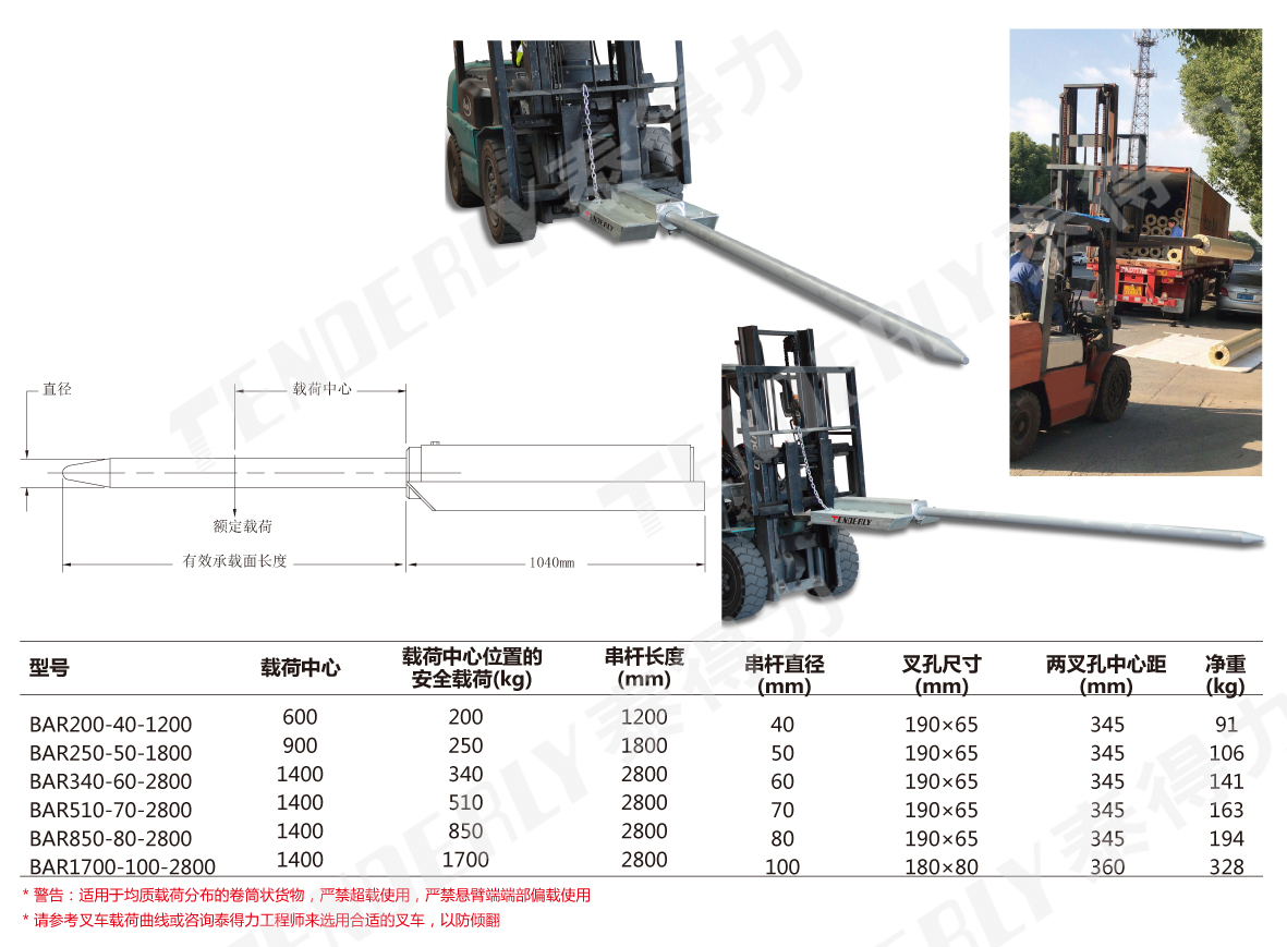 ● 泰得力叉车专用套入式串杆主要用于搬运带