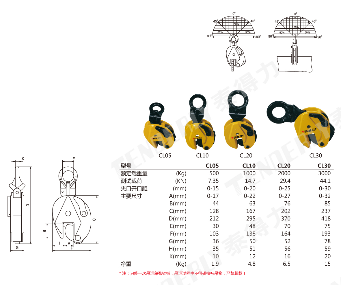 ● 泰得力CL型钢板吊夹适用于垂直吊运或旋转(180度)钢板或结构件