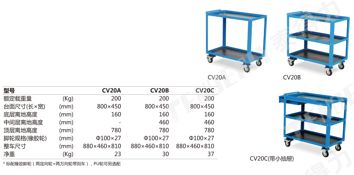 ● 适合在车间工位、仓库、办公室等场所搬运货物或放置工具、零件盒