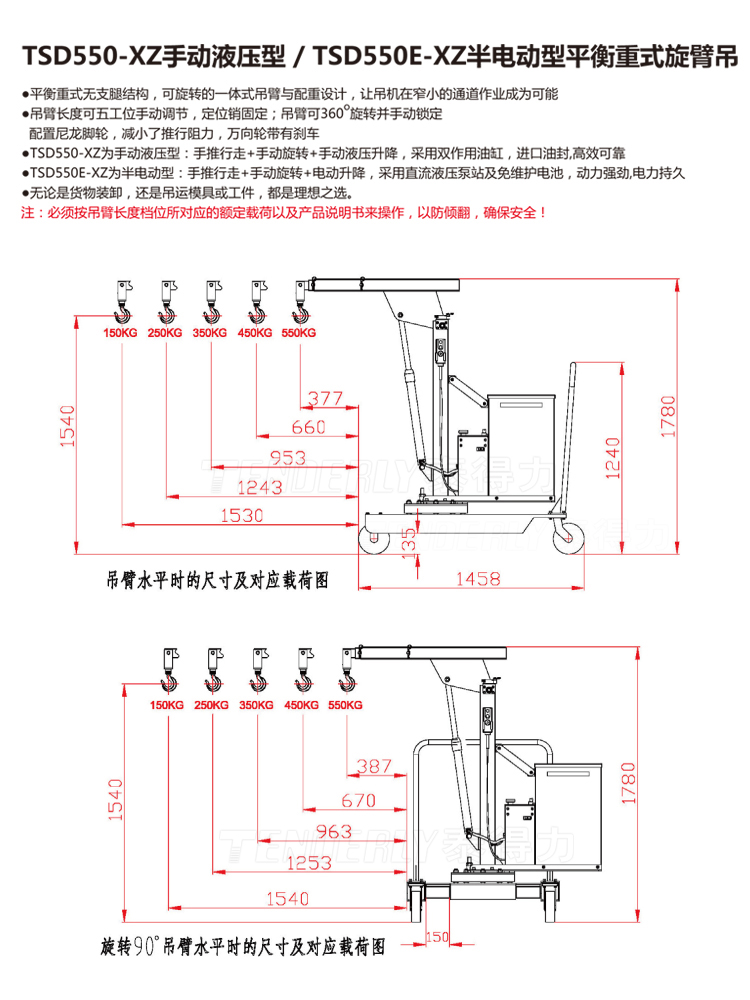 TSD550-XZ手动液压型 / TSD550E-XZ半电动型平衡重式旋臂吊