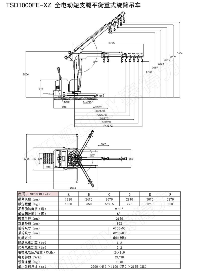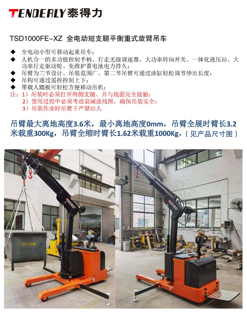 TSD1000FE-XZ全电动短支腿平衡重式旋臂吊车