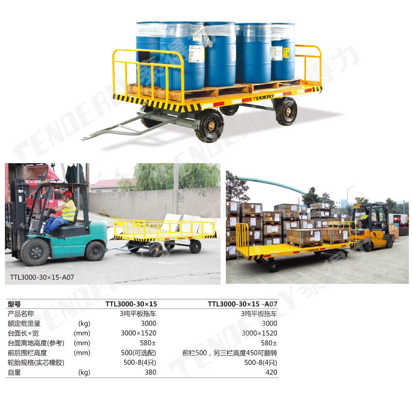 ● 适用于与叉车或牵引车等配套进行厂内运输作业(限速15Km/h、距离5Km以内的工况)