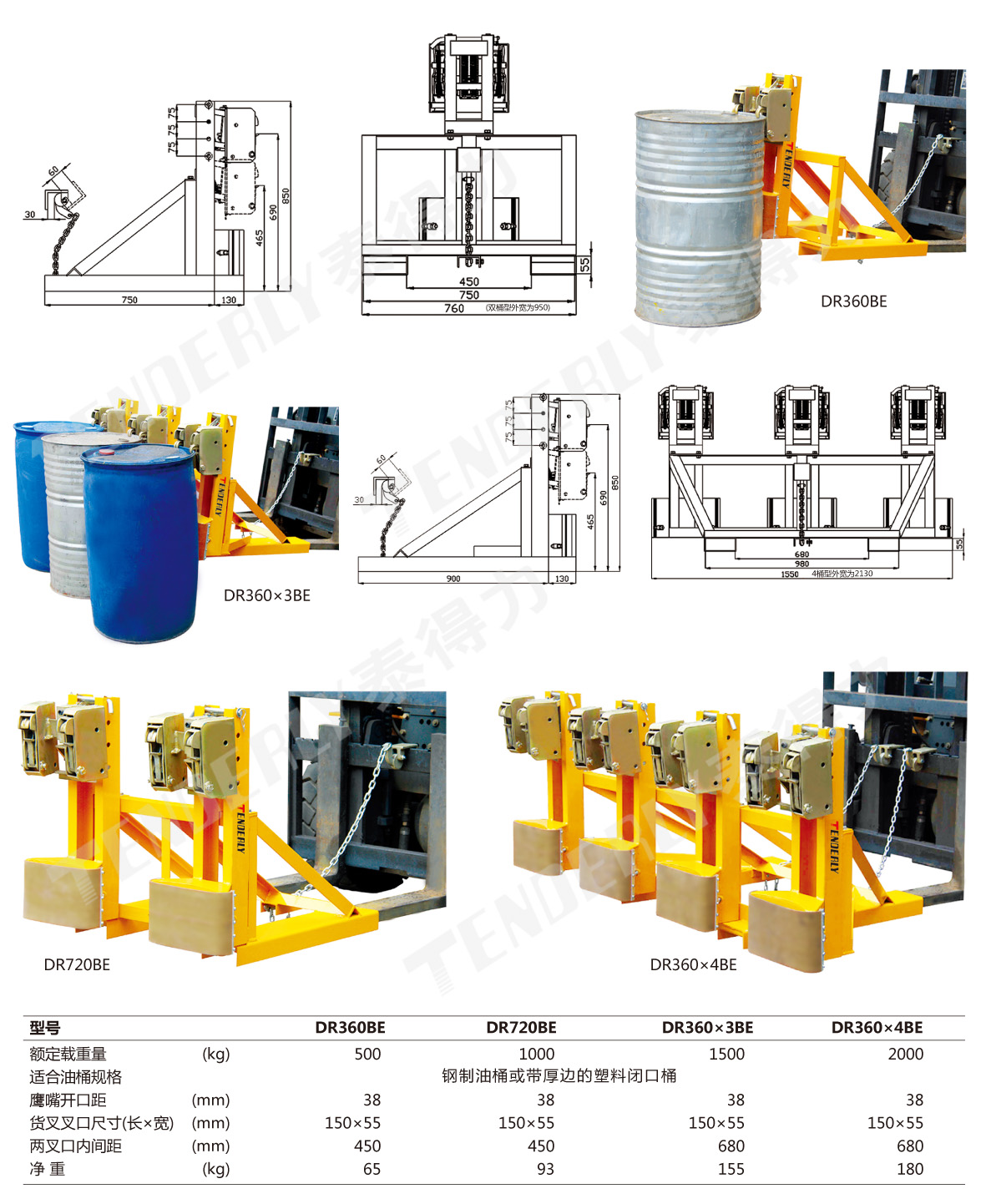 ● 适用于搬运及堆放钢制油桶及带厚边的塑料油桶