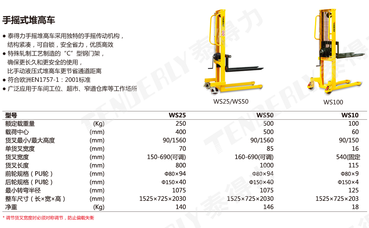 ● 泰得力手摇堆高车采用独特的手摇传动机构,