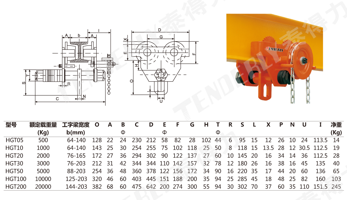 ● 带有手拉链轮机构,能使小车在工字梁上精确移位